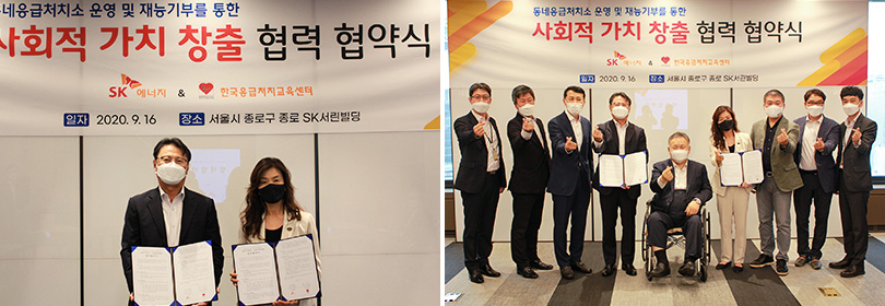 이번 협약식은 SK주유소와 충전소 내 동네응급처치소를 설치·운영하고 응급처치 교육 관련 재능기부 활동을 수행함에 있어 체계적이고 지속적인 사회적가치를 창출하기 위해 상호 적극적인 협력관계를 구축하고자 진행됐다.