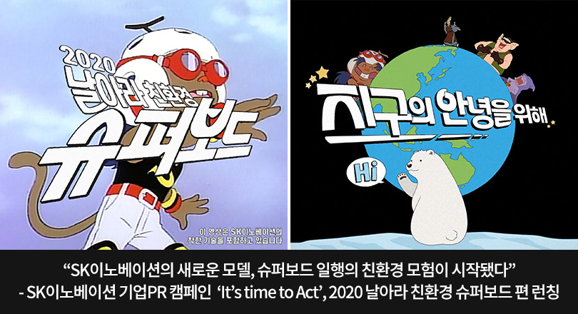 또한 기성 세대들에게는 향수를, 젊은 세대들에게는 신선한 자극을 주는 ‘날아라 슈퍼보드’ 캐릭터와 주제가를 통해 SK이노베이션의 친환경 사업을 보다 쉽고 재미있게 설명한다.