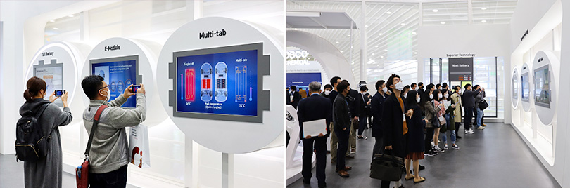 이 외에도 이번 전시에선 글로벌 탑 티어(Top-tier)가 되기 위해 전 세계적으로 빠르게 성장하고 있는 SK이노베이션의 글로벌 배터리 생산 기지 및 생산 규모 등을 소개했다. 또한, E모빌리티(e-Mobility)에 기반해 전기차 배터리 생산 뿐만 아니라 배터리 사업의 전후방 밸류체인을 완성할 수 있는 5R(Rental, Recharge, Repair, Reuse, Recycle)을 전략 플랫폼으로 한 ‘BaaS(Battery as a Service)’ 등도 확인할 수 있게 해 더욱 풍족한 볼거리를 제공했다.