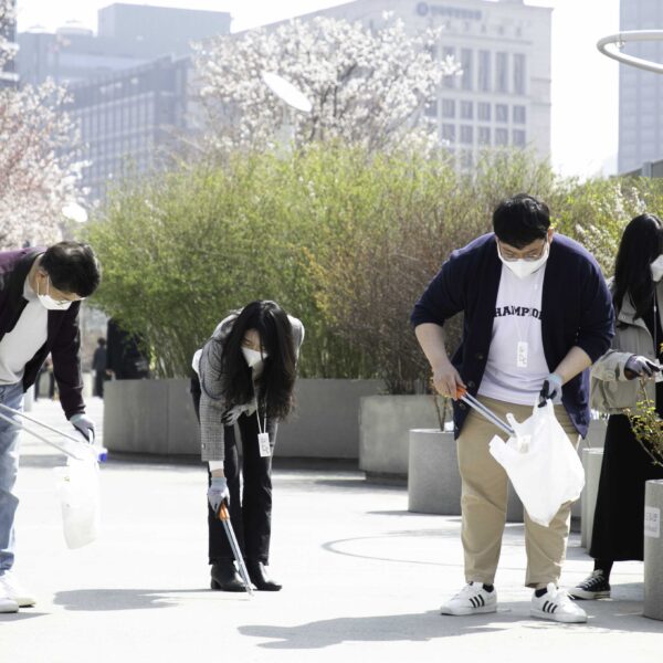 SK지오센트릭이 CEO와 신입사원들이 서울역 및 남대문시장 인근을 함께 걸으며 폐플라스틱 쓰레기를 줍는 봉사활동을 시행했다고 6일 밝혔다.