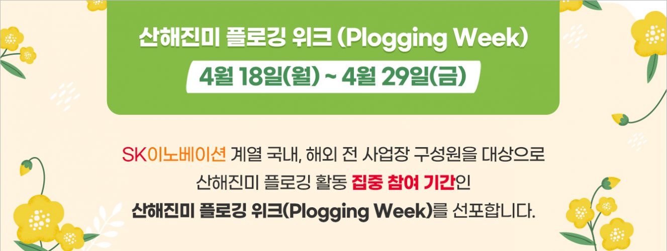 SK이노베이션은 국내외 전 사업장에서 근무하는 SK이노베이션 계열 구성원의 산해진미 플로깅(Plogging)** 활동을 활성화하기 위해 4월 18일부터 4월 29일까지 집중 참여 기간인 ‘산해진미 위크’를 선포했다.