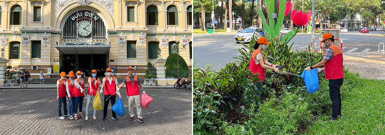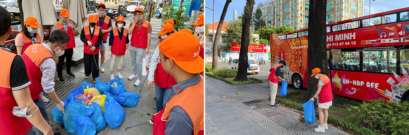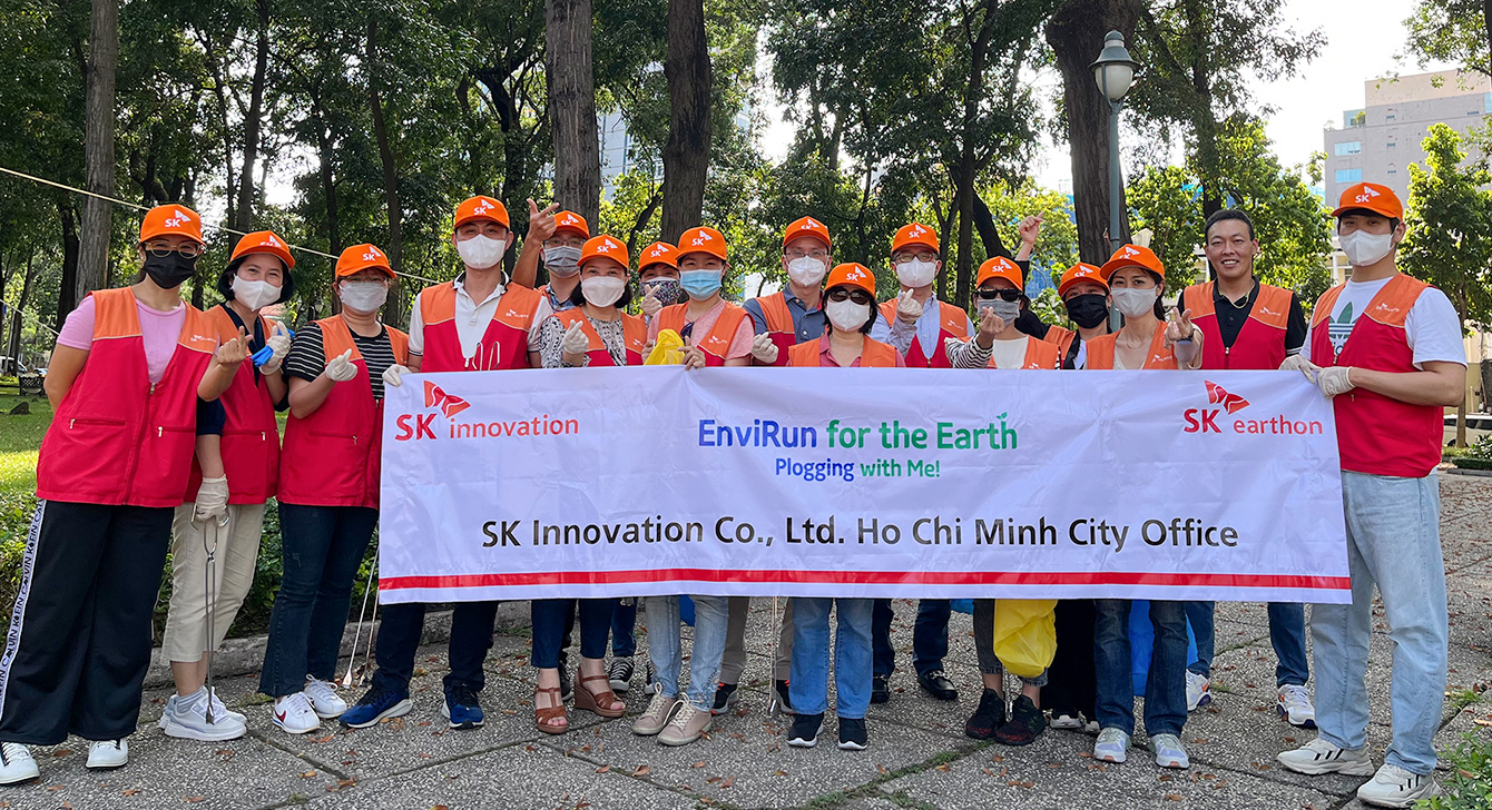 이날 38°C에 달하는 무더운 날씨에도 불구하고 SK어스온 호치민지사 구성원 20여 명은 베트남 호치민시 1군 사무실 인근에 있는 4/30 공원과 노르트담 대성당, 사이공 중앙우체국 일대에서 적극적인 플로깅 활동을 펼치며 환경보호에 앞장섰다.