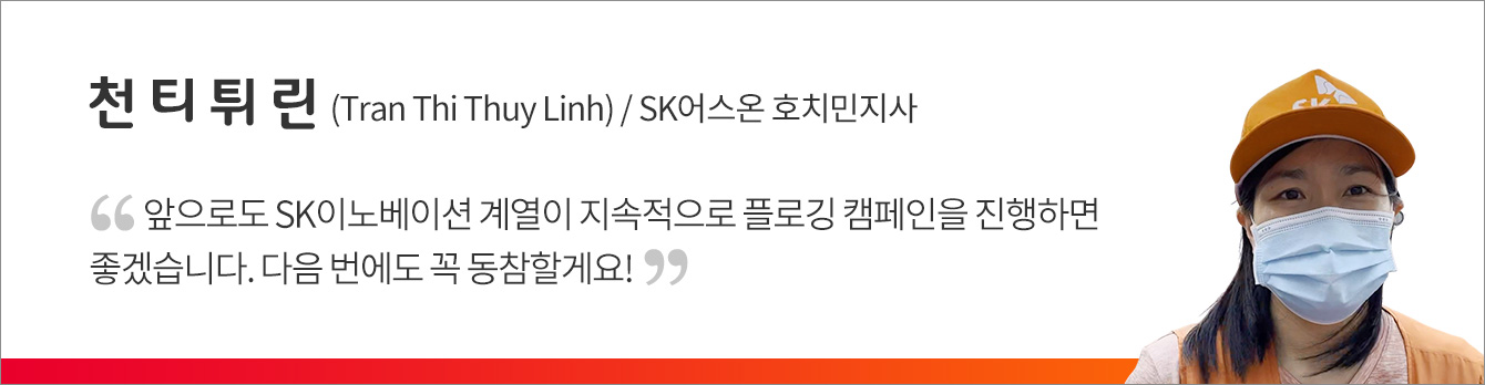 SK어스온 호치민지사는 이번 산해진미 플로깅 위크 참여를 계기로 SK이노베이션의 긍정적 영향력을 베트남 현지에 전파하기 위해 산해진미 캠페인을 포함, 다양한 ESG 활동에도 적극 참여할 계획이다.