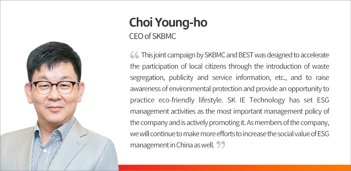 On January 8, SK hi-tech battery materials China (SKBMC) and BEST members gathered to held a campaign BEST to raise awareness on the importance of waste segregation in the local community of Changzhou, where their manufacturing facilities are located. It was also part of their efforts to enhance of local ESS activities.