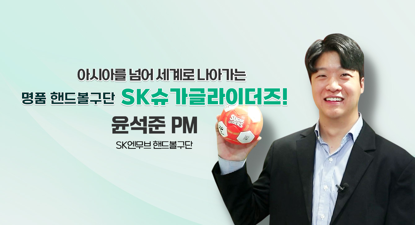 최근 카자흐스탄 알마티에서 열린 ‘아시아 여자핸드볼클럽대회’에서 6연패를 달성하며 아시아 여자핸드볼 최강자로 등극한 SK슈가글라이더즈! 이처럼 SK슈가글라이더즈가 맹활약할 수 있었던 이유는 숨은 조력자, SK엔무브(舊SK루브리컨츠) 윤석준 PM이 있었기에 가능했다 해도 과언이 아니다. SK슈가글라이더즈를 위해 함께 땀 흘리며 응원하는 윤석준 PM을 만나보자.