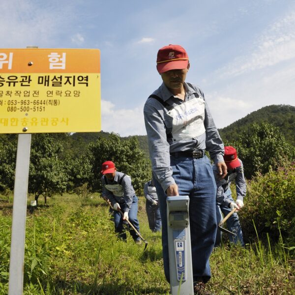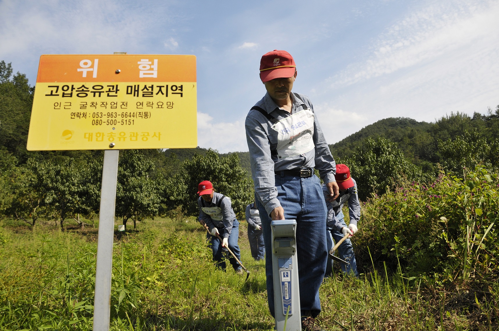 [사진설명] 영남권의 한 송유관 매설 지역에서 대한송유관공사 직원이 송유관로 손상 여부를 확인하는 모습.