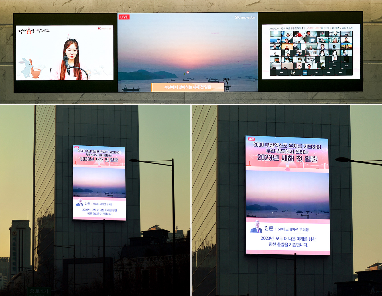 한편, 부산에서 떠오르는 희망의 태양은 SK이노베이션 본사가 위치한 SK서린빌딩(서울 종로구 소재) 로비 미디어월과 광화문역 인근 대형 전광판에도 생중계됐다.