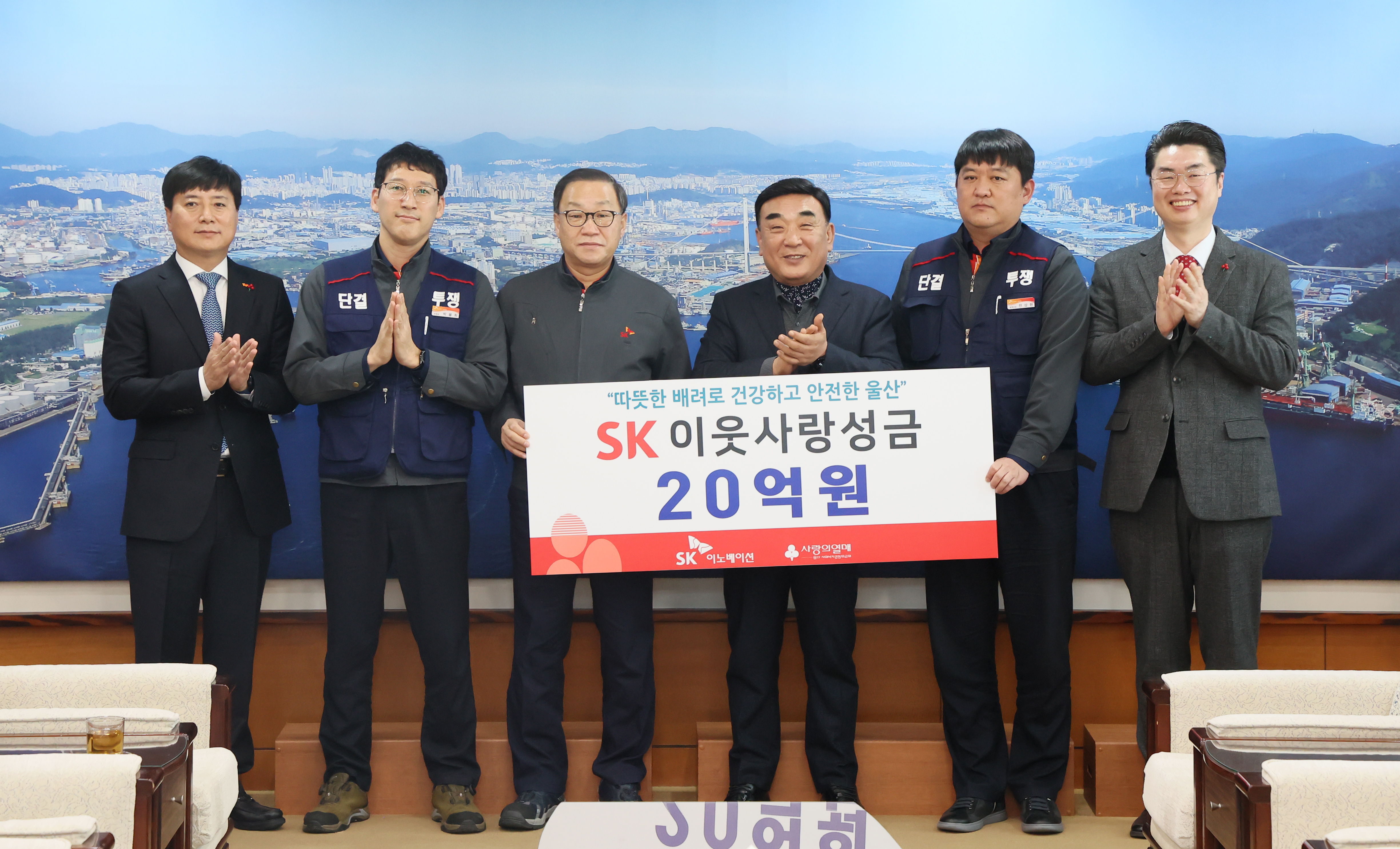 울산광역시청에서 열린 이날 전달식에는 김두겸 울산광역시장, 울산CLX 유재영 총괄 부사장과 SK이노베이션 박율희 노동조합위원장, 울산사회복지공동모금회 조진호 사무처장 등이 참석하였다.