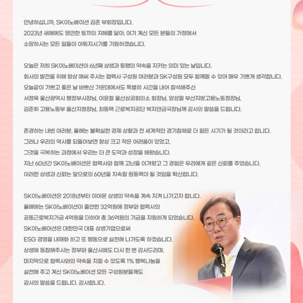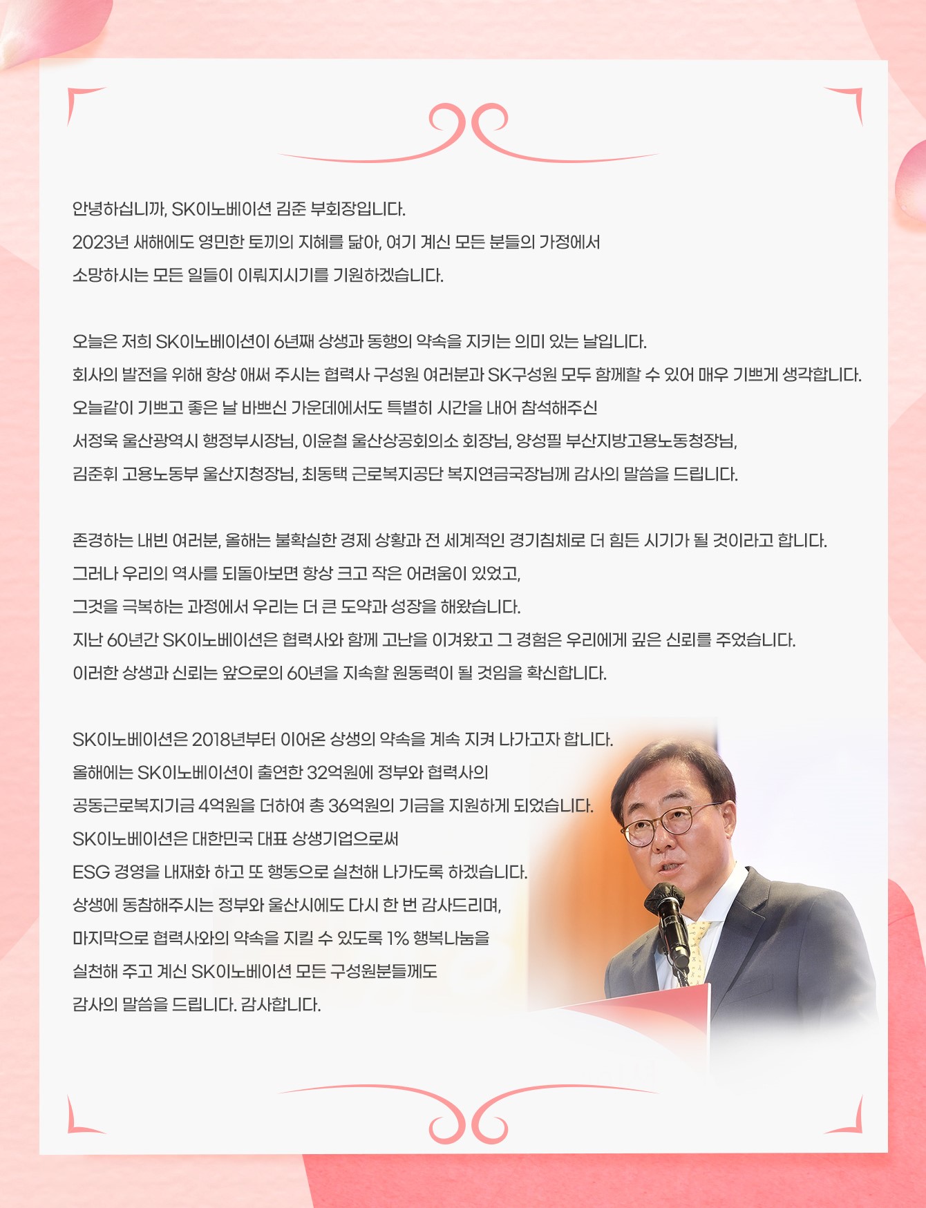 ‘2023 협력사 상생기금 전달식’ – 김준 SK이노베이션 부회장 기념사