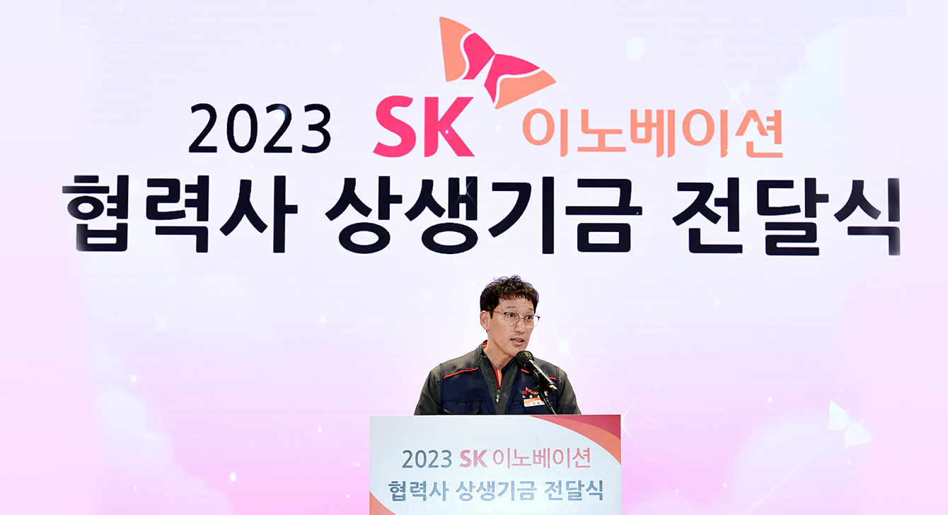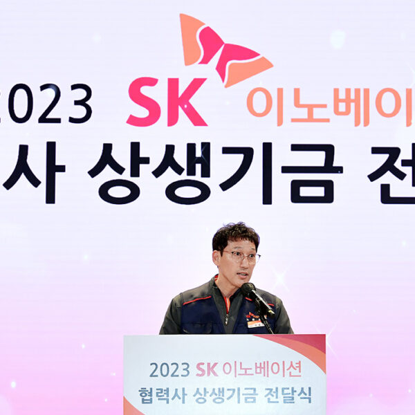SK이노베이션은 6년째 협력사 구성원에게 지난해 노고에 대한 감사와 상생의 의미를 담아 상생기금을 조성해 전달하고 있다. 지난 1월 17일, SK이노베이션은 울산 남구 SK이노베이션 울산Complex 하모니홀에서 열린 ‘2023 SK이노베이션 협력사 상생기금 전달식’에서 상생기금 36억원을 조성해 전달했다.