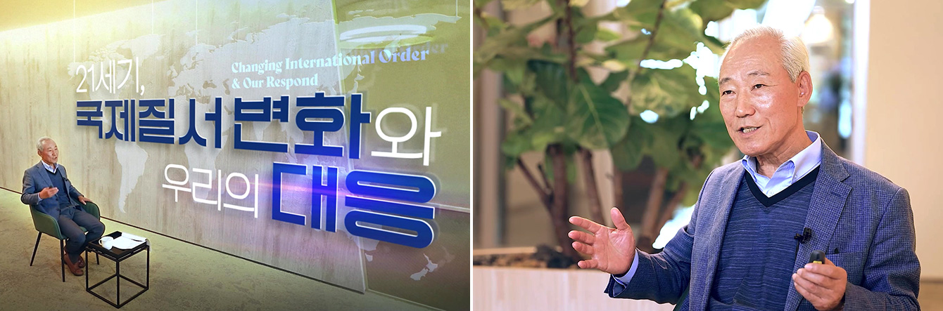 ▲ 2022년 12월, SK그룹 온라인 학습 시스템인 ‘마이써니(mySUNI)’에서 SK그룹 구성원들에게 제공한 SK이노베이션 김종훈 이사회 의장의 ‘국제질서 변화와 우리의 대응’ 강연 장면
