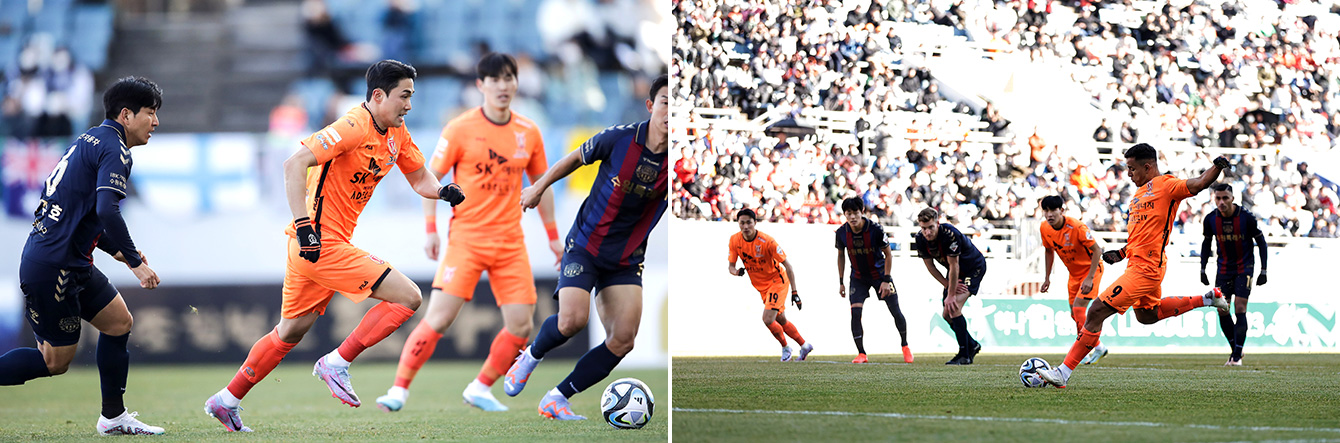 ▲ 2월 26일, 제주월드컵경기장에서 열린 수원FC와의 경기에서 활약을 펼치고 있는 제주UTD 선수들