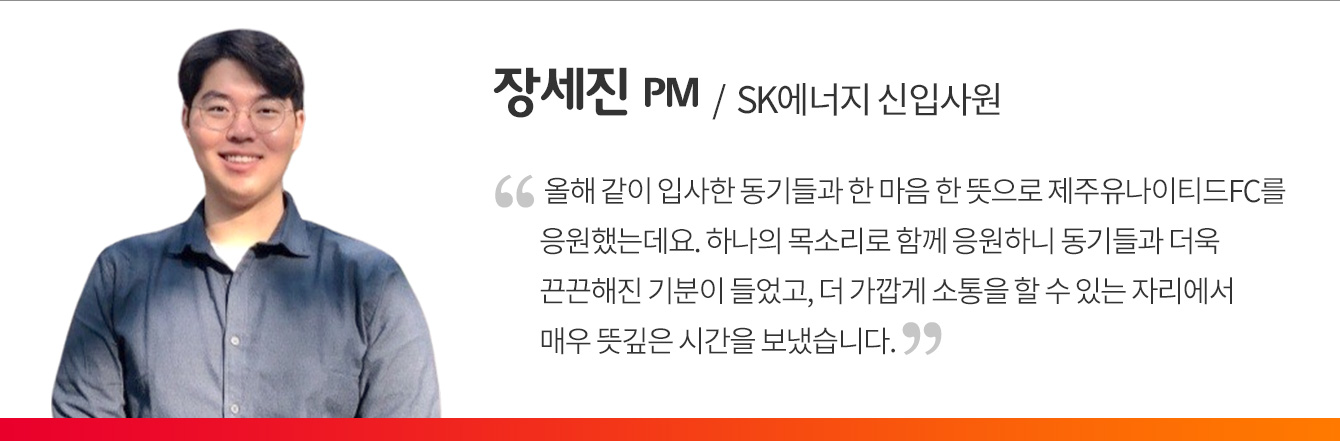 ‘스포츠 ESG’ 캠페인을 추진 중인 SK에너지의 소속 축구단 제주유나이티드FC(이하 제주UTD)가 2월 26일, 수원FC와 K리그1 시즌의 시작을 알리는 홈 개막전을 펼쳤다. 제주월드컵경기장에서 진행된 이번 개막전에서는 특히 SK이노베이션 계열이 스포츠를 통해 실천해 나갈 ESG 활동을 팬과 관중들에게 다채롭게 선보였다. 더불어 2030 부산세계박람회 유치 기원 퍼포먼스까지 선보여 경기장을 찾은 관람객들의 이목을 집중시켰다.