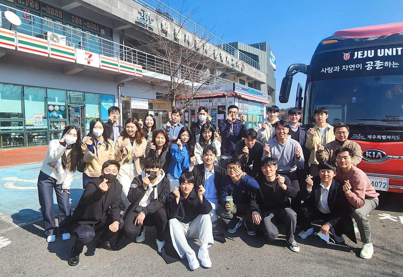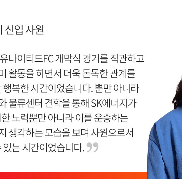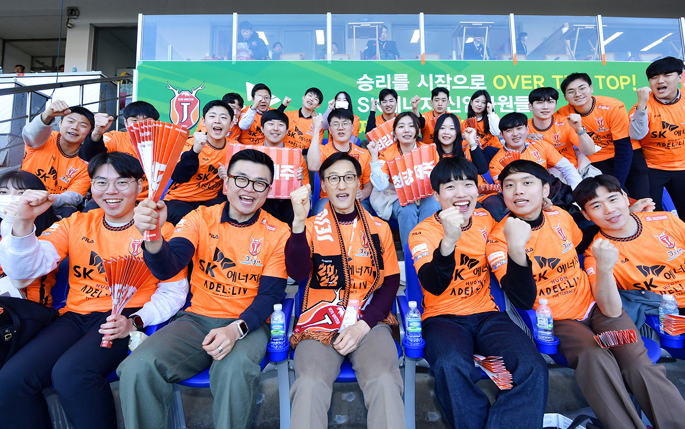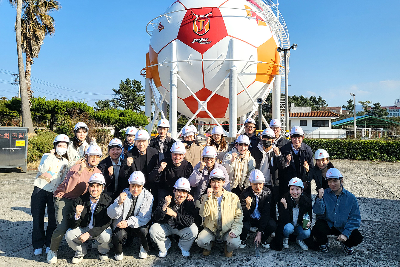지난 2월 26일, SK에너지 신입사원들은 첫 일정으로 제주유나이티드FC(이하 제주UTD) 개막전이 열린 제주월드컵경기장에 방문했다. ‘스포츠 ESG’ 캠페인을 추진하고 있는 SK에너지의 소속 축구단 제주UTD는 당일 수원FC와 개막전을 치렀다. 신입사원들은 개막전을 관람하며, 선수들의 열정에 감동해 열과 성을 다하는 마음으로 응원했다.