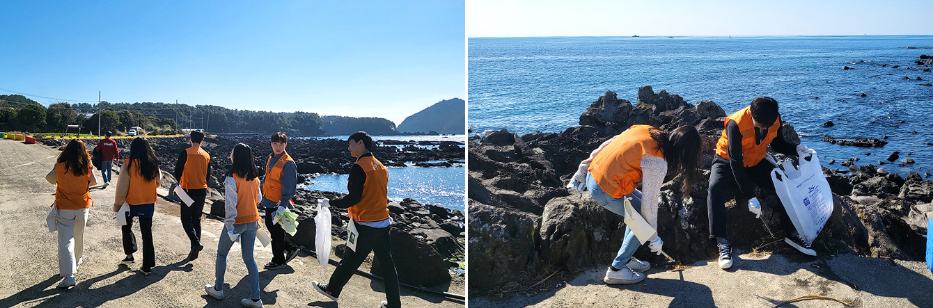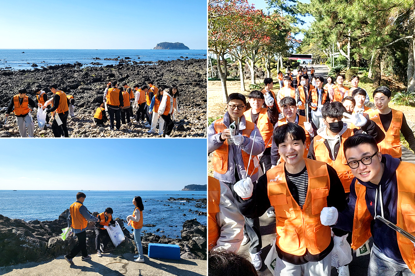 개막전 응원 열기를 뒤로하고, 2일 차인 2월 27일 오전에는 제주 올레길 6코스 산해진미 활동을 진행했다. 산해진미 캠페인은 ‘산(山)과 바다(海)를 참(眞) 아름답게(美) 만들자’는 의미로, 조깅이나 산책을 하면서 쓰레기를 줍는 활동인 플로깅(Plogging)*이 바탕이다. 작은 실천이 큰 변화를 이끈다는 실천적 ESG** 활동의 일환으로, SK이노베이션 계열이 전사적으로 시행하고 있다. 지난 2022년 한 해 동안, 지구를 지키기 위해 전국 27만여 명의 시민들이 함께 산해진미 활동에 참여하기도 했다. 이날 신입사원들은 SK에너지의 구성원으로서 ESG 활동을 직접 경험하고, 그 취지를 몸소 배웠다.