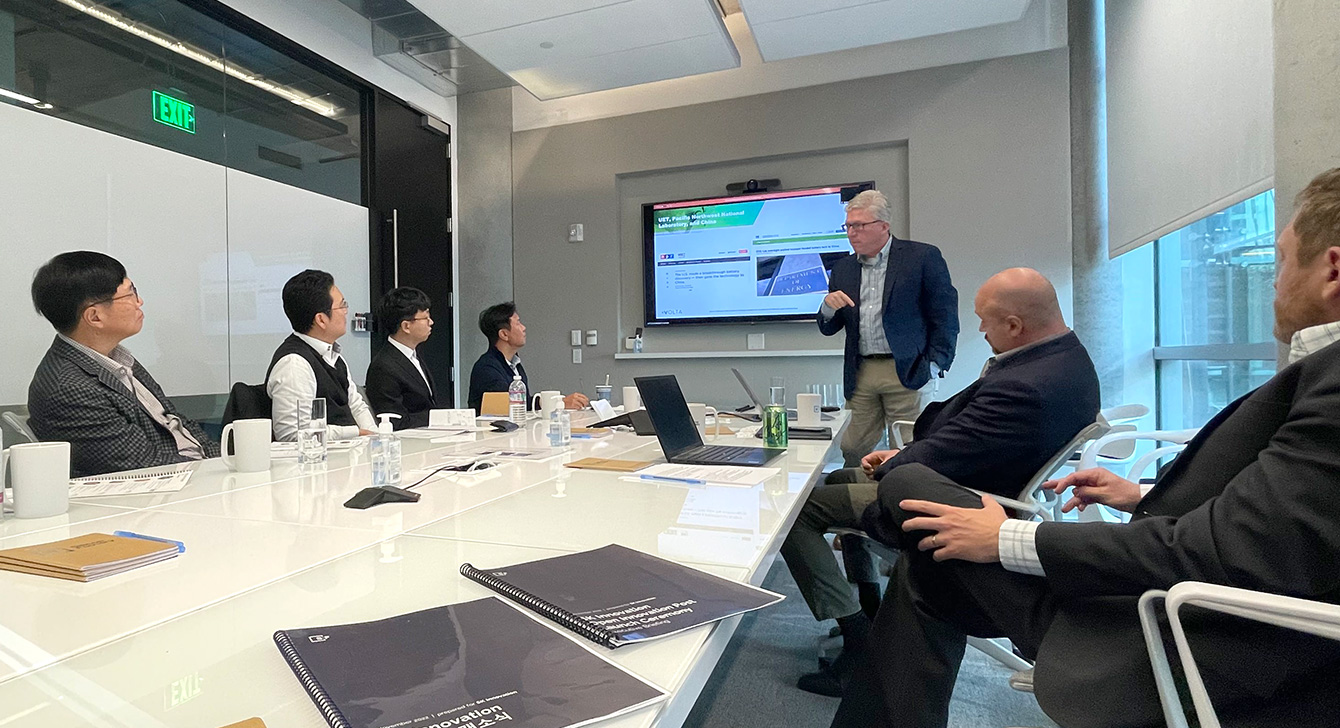 ▲ 2022년 11월, 미국 샌프란시스코 실리콘밸리에 위치한 글로벌 혁신 자문기업 실리콘 파운드리社의 본사에서 열린 Global Open Innovation Post 개소식 이후 이어진 전문가 세미나에 참석한 SK이노베이션 이성준 환경과학기술원장(왼쪽에서 두 번째)