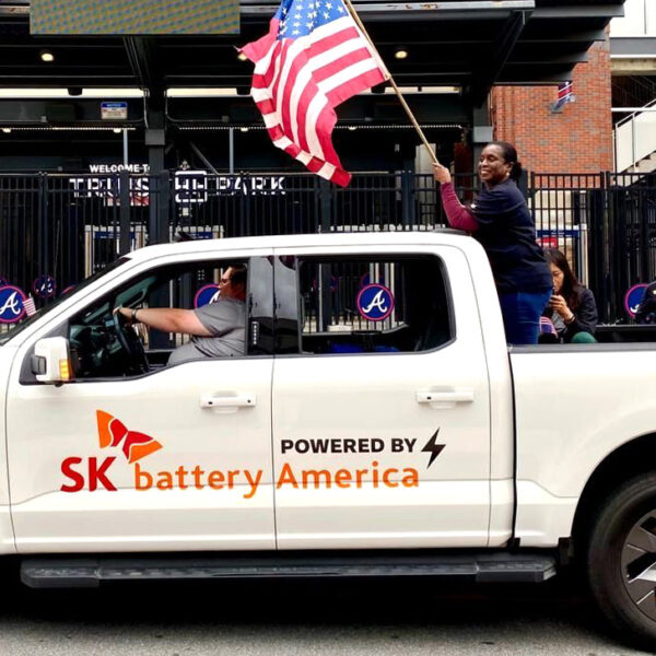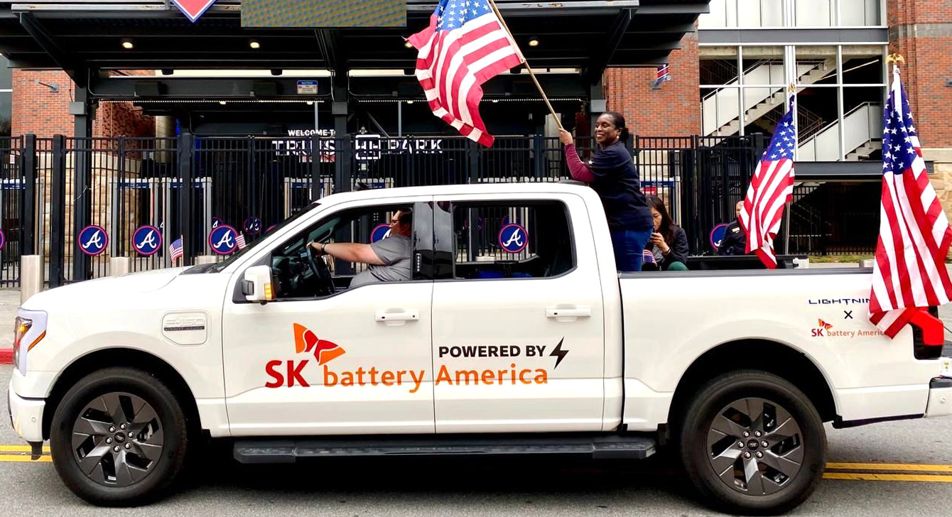 ▲ 2022년 11월, SK Battery America가 ‘미국 재향군인의 날’을 기념해 조지아 참전용사들을 기리기 위한 축제에서 퍼레이드를 하고 있다.