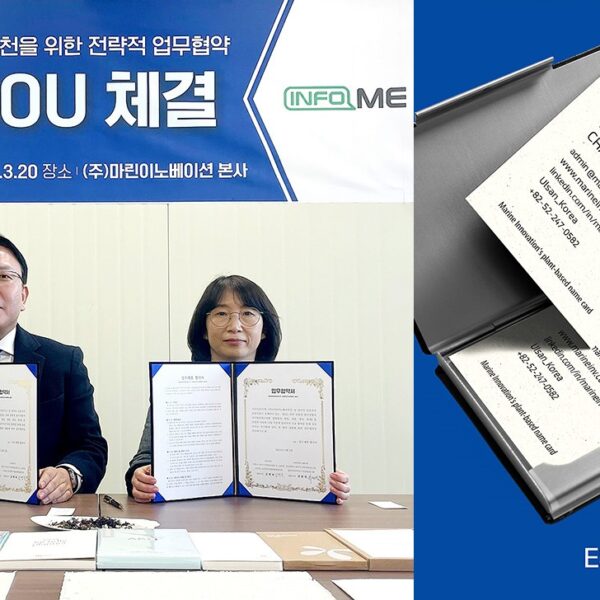 마린이노베이션은 MOU를 통해 손잡은 인포미와 함께 마린명함과 디지털 콘텐츠 명함 시장 확대에 나서게 된다. 차 대표는 “실물 명함의 필요성을 감안해 고객이 마린명함과 디지털 명함을 같이 제작할 수 있도록 하고자 한다”고 말했다. 환경보호에 기여할 수 있는 방향으로 명함 제작을 진행하겠다는 설명이다.