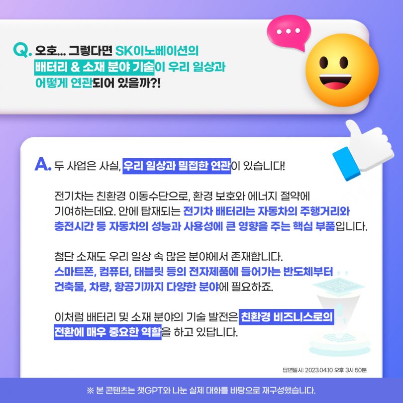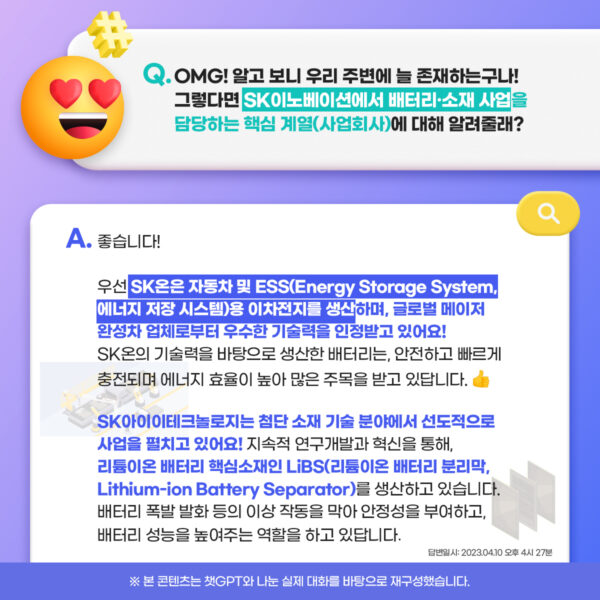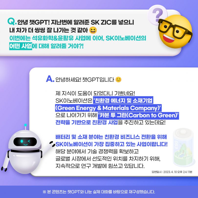 “인싸 인공지능 챗봇, 챗GPT가 SK이노베이션 계열을 소개한다!”