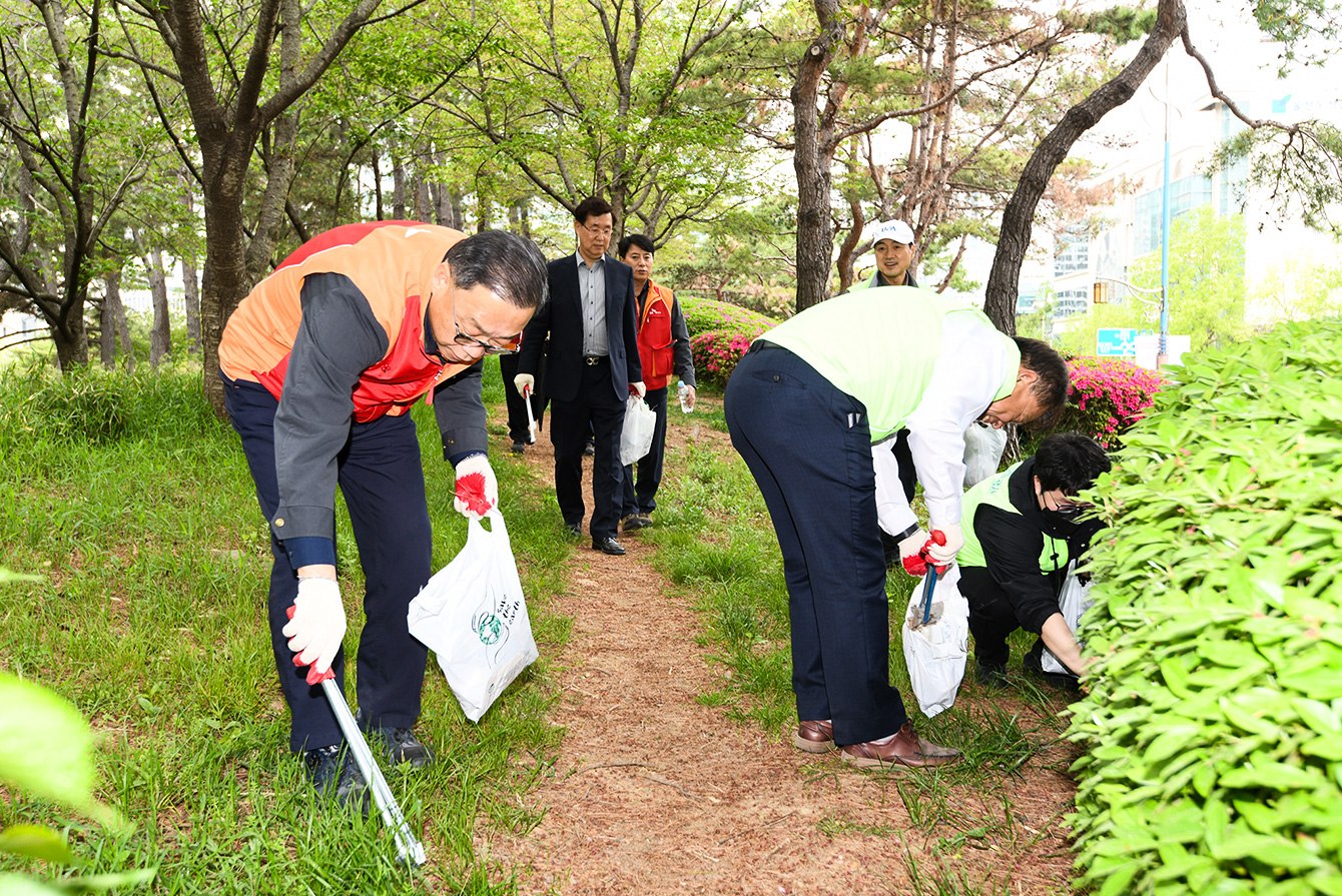 발대식 참석자들은 울산대공원 동문을 나서 공업탑 인근 도로변을 걸으며 폐플라스틱을 비롯한 쓰레기를 수거하는 산해진미 합동 플로깅 자원봉사활동도 진행하였다.