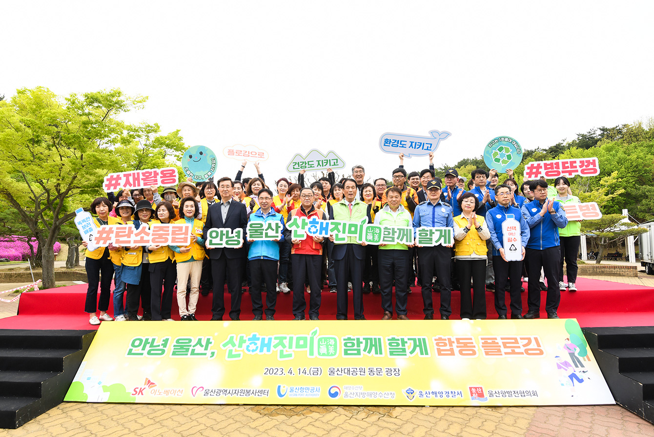 SK이노베이션 울산Complex(이하 울산CLX)와 (사)울산광역시자원봉사센터는 14일 오후, 울산대공원 동문 광장에서 ‘안녕 울산, 산해진미 함께 할게’ 민•관 합동 플로깅(*) 발대식을 개최했다.
