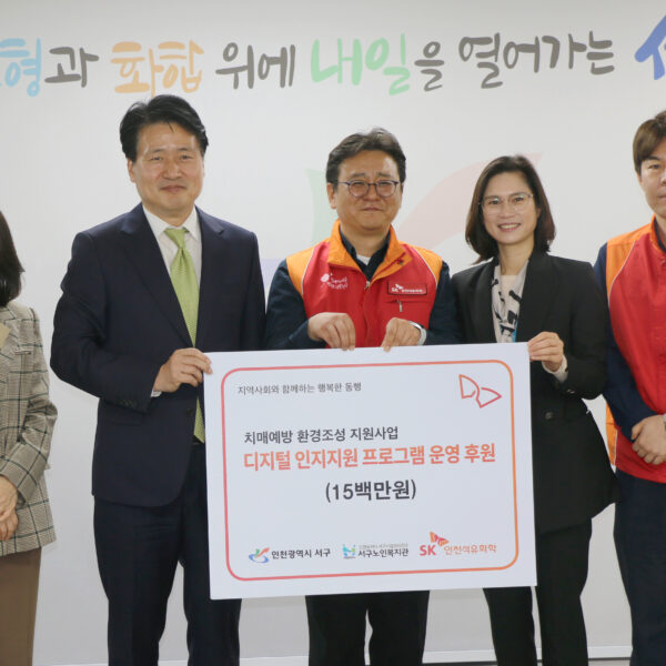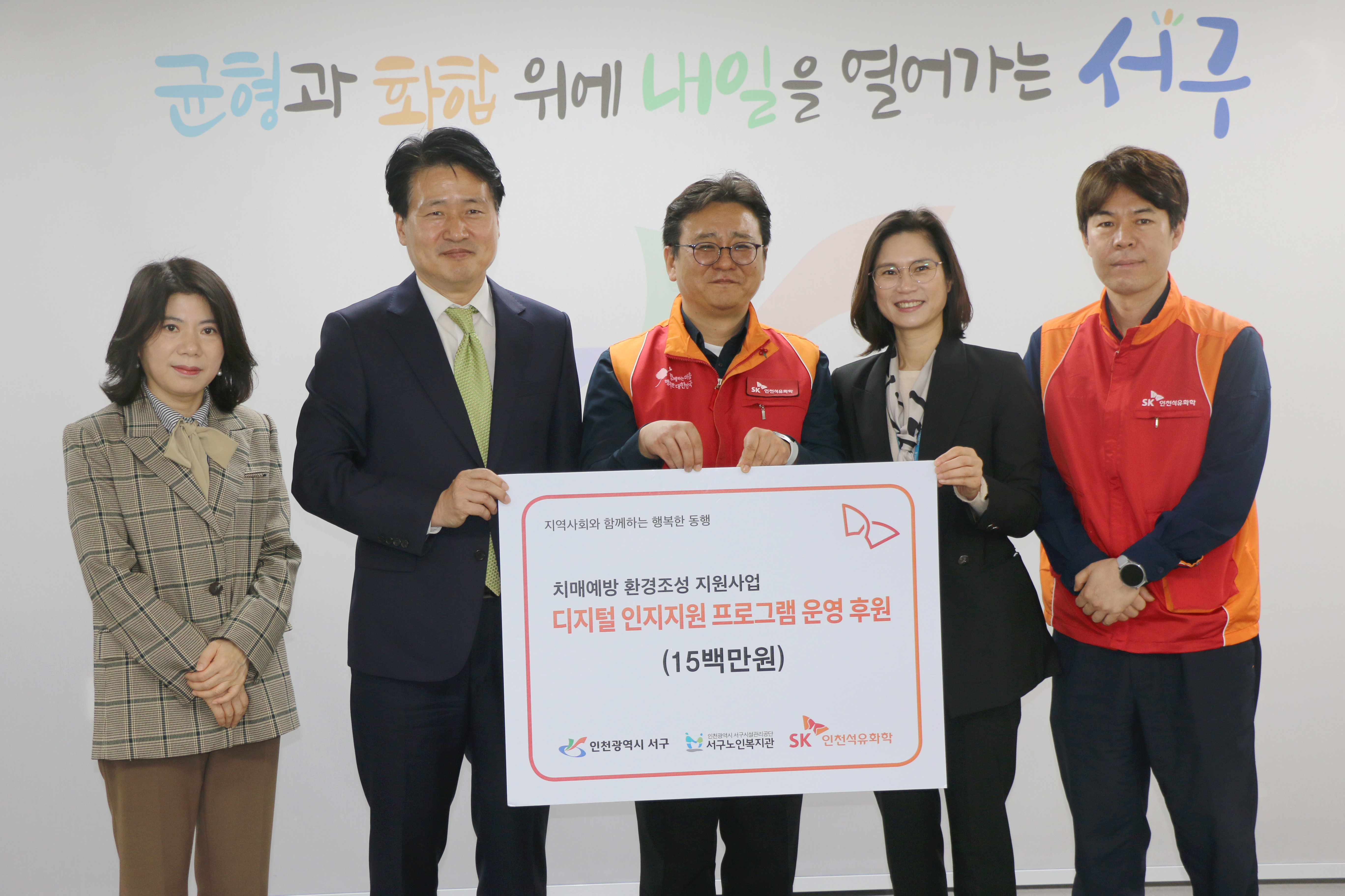 SK인천석유화학은 19일 인천광역시 서구청에서 강범석 서구청장, 인천 서구노인복지관 정서연 관장, SK인천석유화학 홍욱표 경영혁신실장 등이 참석한 가운데 치매 예방 환경조성을 위한 인지지원 프로그램 지원금 1천5백만원을 전달했다.