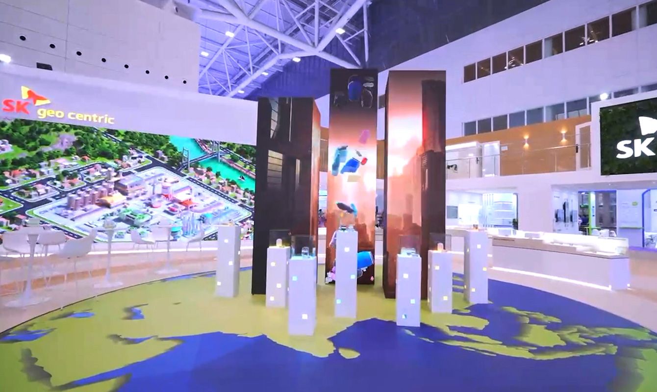 그 중에서도 SK지오센트릭 부스는 오픈된 공간에 친환경 사업전략인 도시유전을 모티브로 하는 LED 타워를 중심으로, 다양한 제품을 전시해 눈길을 끌었다. 참여형 전시 공간과 다양한 이벤트 프로모션도 진행해, SK지오센트릭 부스에 대한 방문객들의 관심도를 높였다. QR코드를 활용한 Paperless 부스로 폐기물을 최소화하면서 친환경 트렌드에 발맞추기도 했다.
