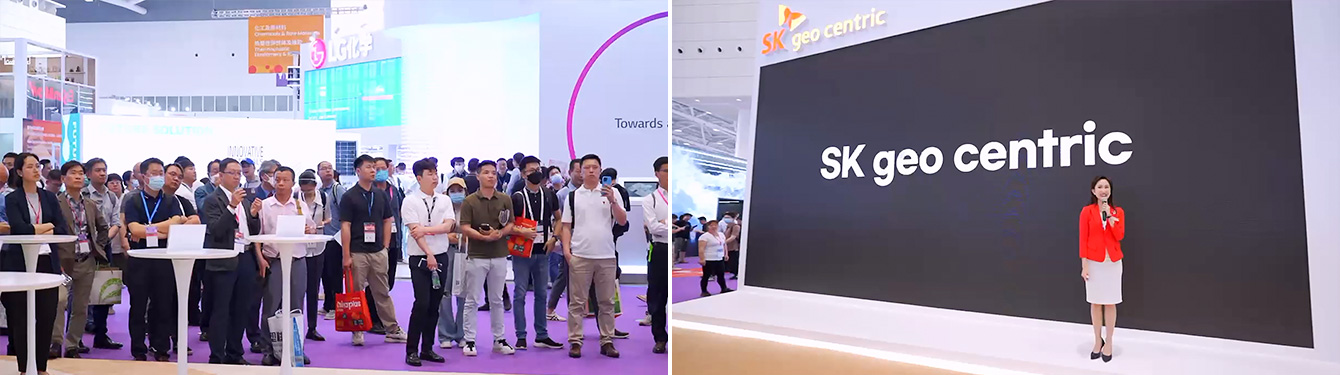 SK지오센트릭의 적극적인 글로벌 행보는 계속되고 있다. SK지오센트릭이 4월 17일부터 20일까지,중국 선전에서 개최되는 세계 3대&아시아 최대 규모 플라스틱·고무 전시회 ‘차이나플라스 2023’에 참가했다. SK지오센트릭으로의 사명 변경 이후 첫 ‘차이나플라스 2023’ 참여로, 사명 변경의 의의와 더불어 친환경 비즈니스 전환(Green Biz. Transformation)을 효과적으로 알리기 위함이다. 전시에서 SK지오센트릭은 플라스틱 재활용 사업 청사진과 고부가 화학소재를 중심으로 글로벌 시장을 겨냥한 여러 사업전략을 선보였다. 전세계 고객들에게 회사의 비전과 미래 성장동력을 알린 현장을 지금부터 확인해 본다.
