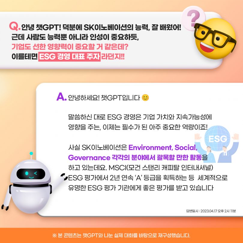 “인싸 인공지능 챗봇, 챗GPT가 SK이노베이션 계열을 소개한다!”