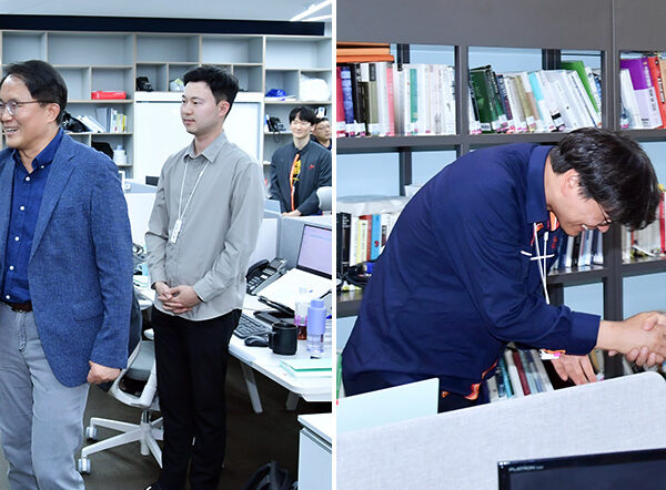 이어, 김철중 사장은 증평 공장 공유오피스를 방문해 여러 구성원들과의 소통을 이어갔다. 악수를 나누고 기념촬영을 하는 등 화기애애한 분위기를 자아냈다.