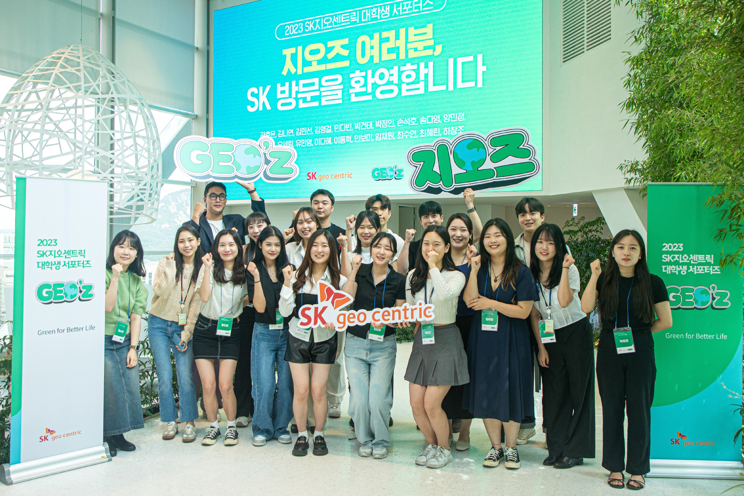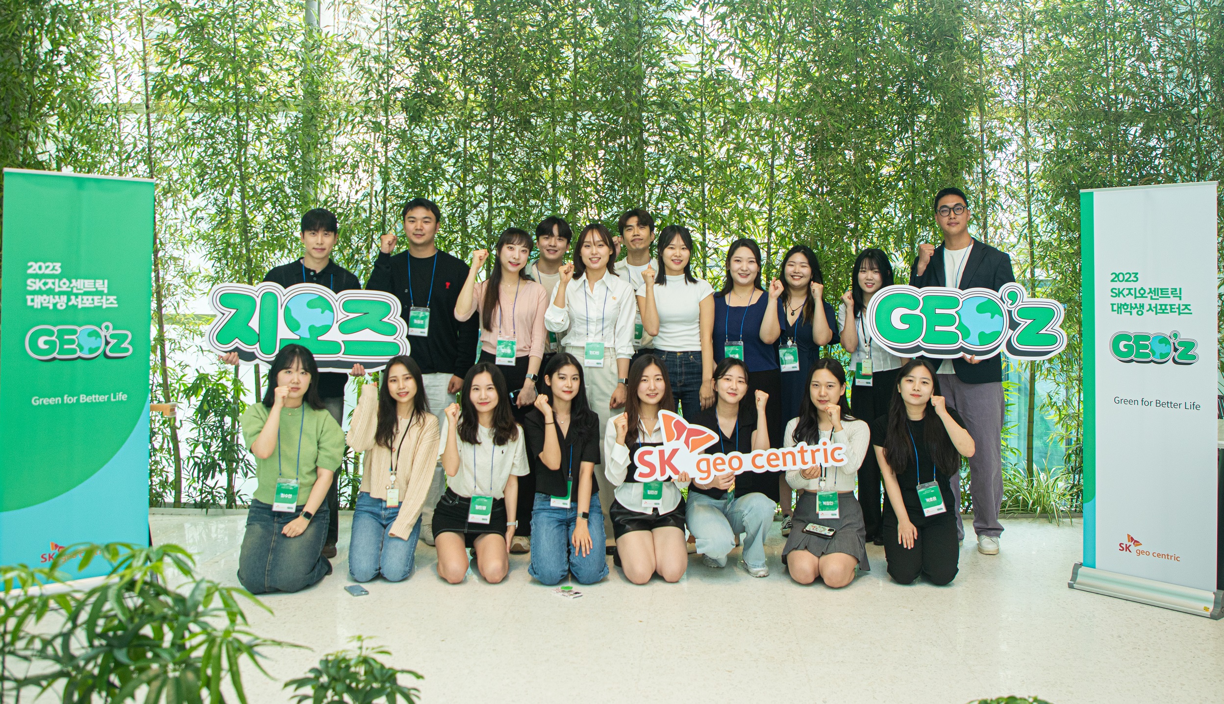 SK지오센트릭은 지난 30일 서울시 종로구 SK그린캠퍼스(종로타워빌딩)에서 대학생 서포터즈 ‘지오즈’(GEO’z) 발대식을 개최했다고 밝혔다. 이날 발대식에는 지난 한달간 서류 전형과 면접을 거쳐 선발된 대학생 20명이 참석했다. SK지오센트릭 관계자는 “지원자가 421명에 달해 20배가 넘는 경쟁률을 기록하는 등 환경을 지키는 활동에 대한 젊은 세대의 뜨거운 관심을 느낄 수 있었다”고 밝혔다.