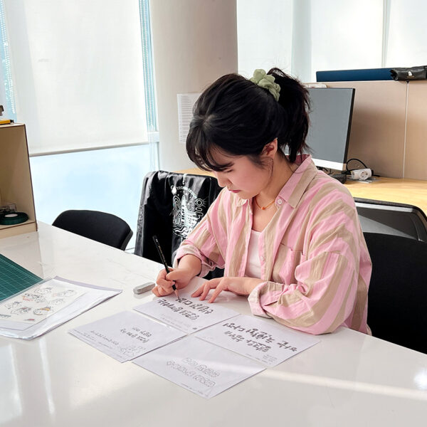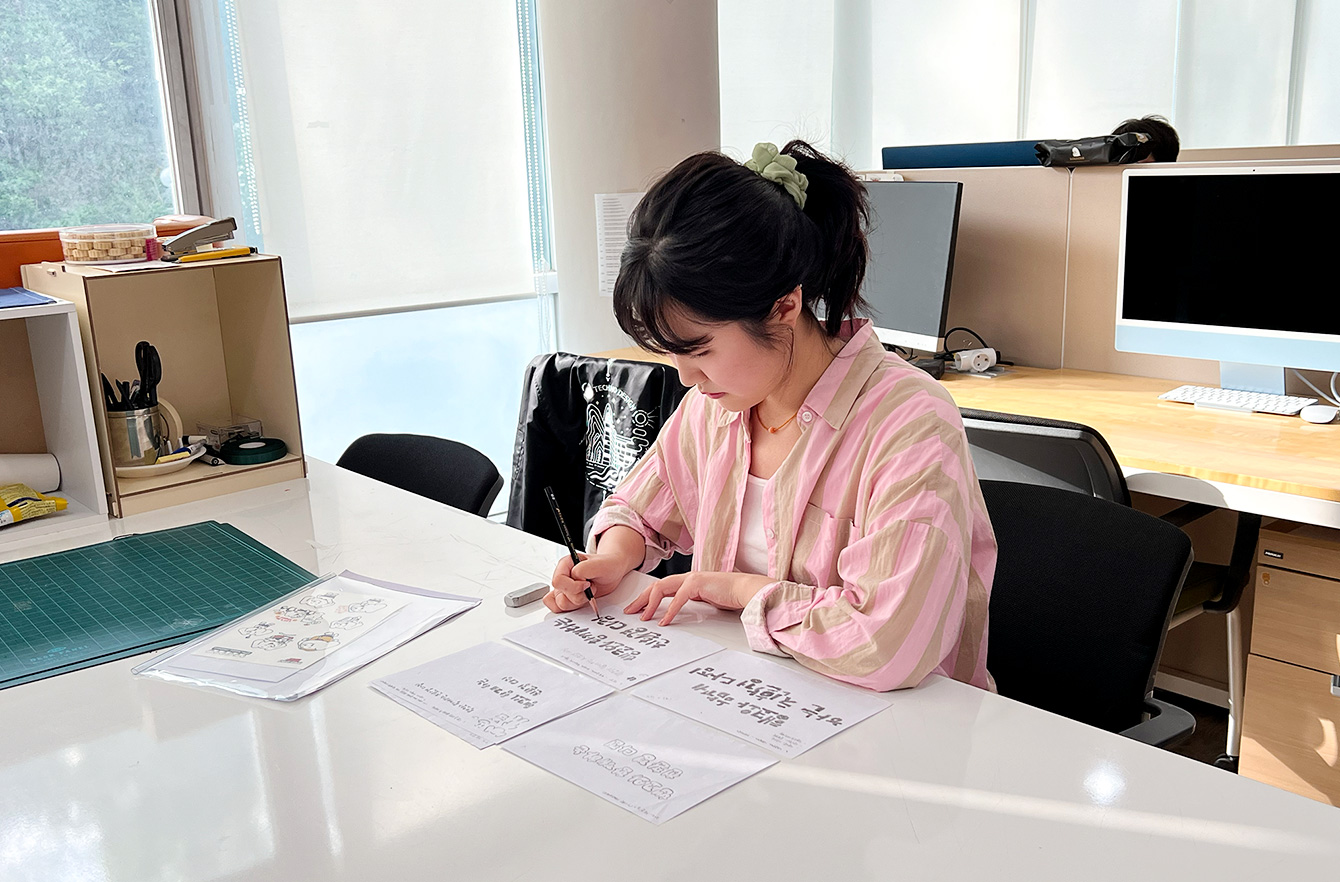 ▲ 행코 서체 개발을 위해 초기 손 스케치 작업 중인 이새빈 학생