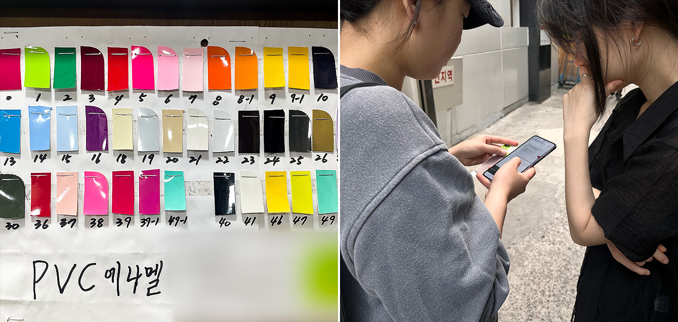 ▲ 행코 풍선 제작을 위해 동대문 소재 한 상점에서 원단을 고르는 중인 ‘행코 슈퍼사인’ 팀