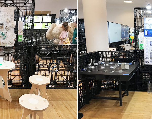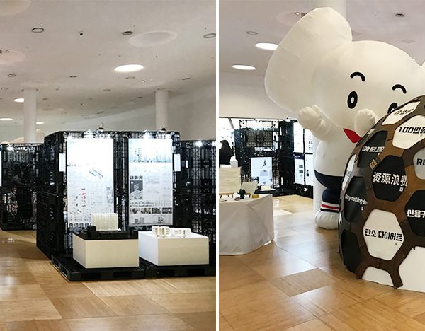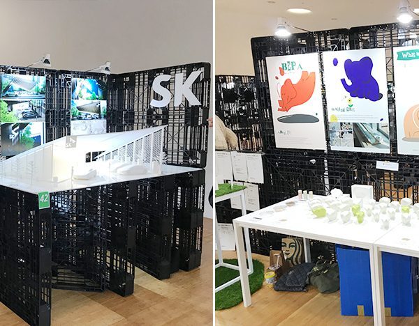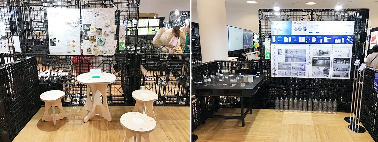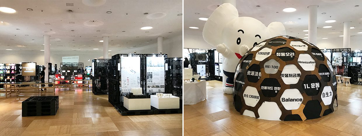 전시장은 폐플라스틱으로 제작한 팔레트를 활용, 탄소 장막으로 형성된 미로를 표현하고 그 가운데 청년들이 환경문제 해결을 위한 새로운 아이디어와 해법을 디자인으로 제시한다는 의미를 상징적으로 표현했다.