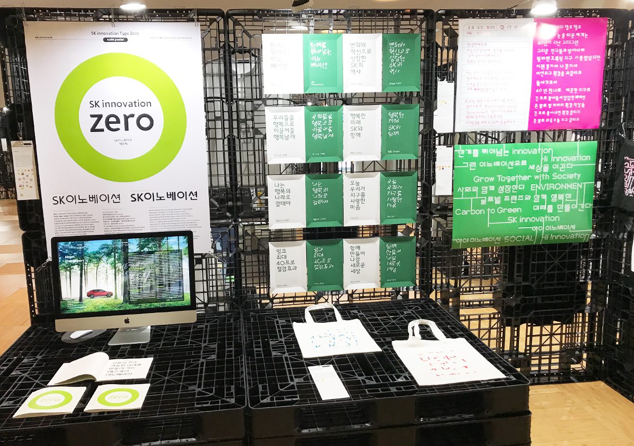 또한 SK이노베이션 전용 서체와 더불어 행코 캐릭터를 표현한 작품, 환경 문제를 해결하기 위한 굿즈, 가구 콘셉트 디자인, 건축물 디자인, 폐소재를 활용한 공예작품 등이 다양하게 전시되었다.