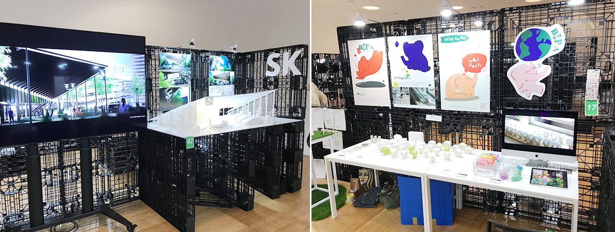 ‘SK에너지스테이션 디자인’ 팀은 전기차 충전을 위한 신규 에너지 스테이션의 콘셉트 디자인을 선보였다. 기존 주유소에서 나아가, 사람들이 머무르며 즐길 수 있는 복합문화공간으로서의 변화를 디자인하여 제안했다. ‘BEPA(Baby Elephant Protection Association)’ 팀은 ‘행코’ 캐릭터를 모티브로, 친환경적인 미래 지구에서 행복한 아기 코끼리를 표현한 오브제를 전시하고 배부했다.