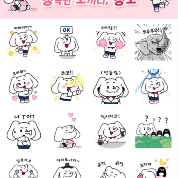 (사진2) 24종으로 구성된 행복 코끼리(행코) 카카오톡 이모티콘