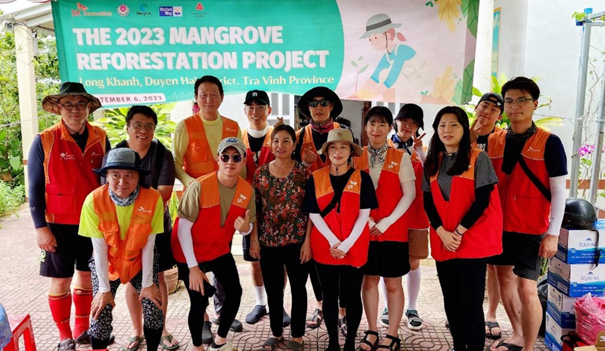 베트남 맹그로브숲 식수활동은 SK이노베이션 계열 구성원의 자발적인 참여로 조성된 1% 행복나눔 기금 사업 중 하나로, 맹그로브숲을 복원하여 탄소 저감에 기여하기 위한 SK이노베이션의 ESG 경영 활동 중 하나다. 맹그로브 나무는 진흙과 뻘, 소금기가 있는 곳에서도 살 수 있으며 탄소 흡수량이 보통 나무에 비해 5배 이상이다. 거미줄 같은 뿌리는 해양 생물종의 안전한 보금자리가 되기도 하고, 천재지변을 보호해 주는 방파제 역할을 하기도 한다.
