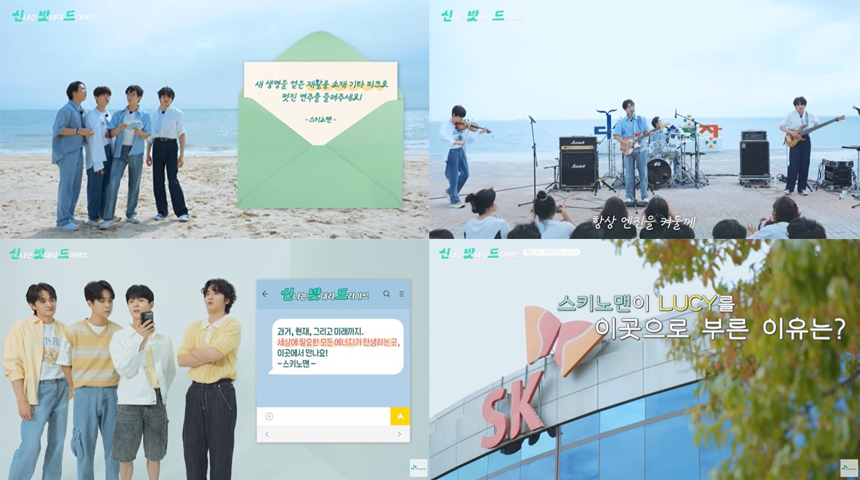 최근, SK이노베이션과 SK이노베이션의 전기차 배터리 사업회사 SK온이 콜라보 콘텐츠 ‘신밧드: 신나는 밧데리 드라이브’(이하 신밧드)를 선보였다. 젊은 세대에게 가장 인기 있는 K밴드 씬 대표주자인 남성 4인조 밴드 <LUCY>와 협업해 자연과 음악을 소재로 하는 콘텐츠를 선보인 것이다. 이는 SK이노베이션 계열 간 활발한 협업을 통해 ‘그린 에너지·소재 회사(Green Energy & Materials Company)’라는 비전을 명확하고 일관성 있게 소구 하기 위한 노력의 일환이다.