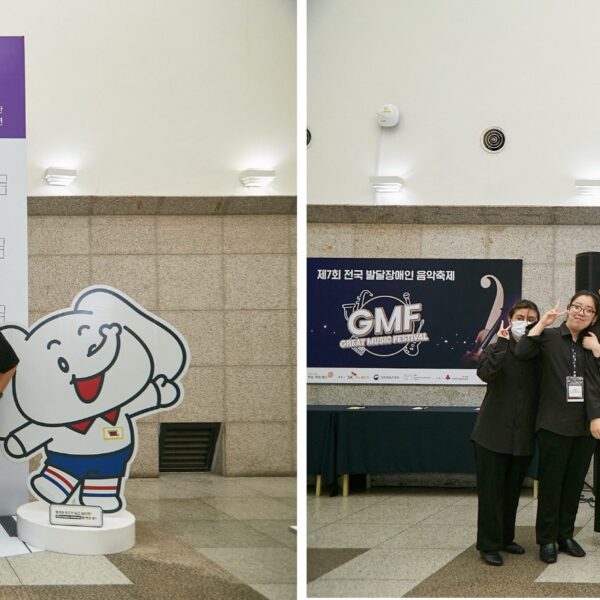9월 26일, 제7회 GMF가 열린 건국대학교 새천년관 대공연장을 찾은 관객들의 모습에서는 설렘이 가득 느껴졌다. 이날 현장에서는 본 공연이 시작되기 앞서 GMF를 보다 깊이 있게 즐길 수 있도록 마련된 다양한 부대행사가 관객을 맞이했다. 가장 먼저 눈길을 사로잡는 건 행사장 로비 곳곳에 자리한 GMF의 7년 여정과 제7회 GMF 본선 진출 연주단체에 대한 소개였다. 관객들은 GMF가 지금까지 걸어온 길에 이목을 집중하며, 많은 것이 빠르게 생기고 사라지는 이 시대에도 발달장애인의 음악적 재능을 응원하고 이들의 꿈이 계속되어야 한다는 GMF의 굳건한 믿음에 공감했다.