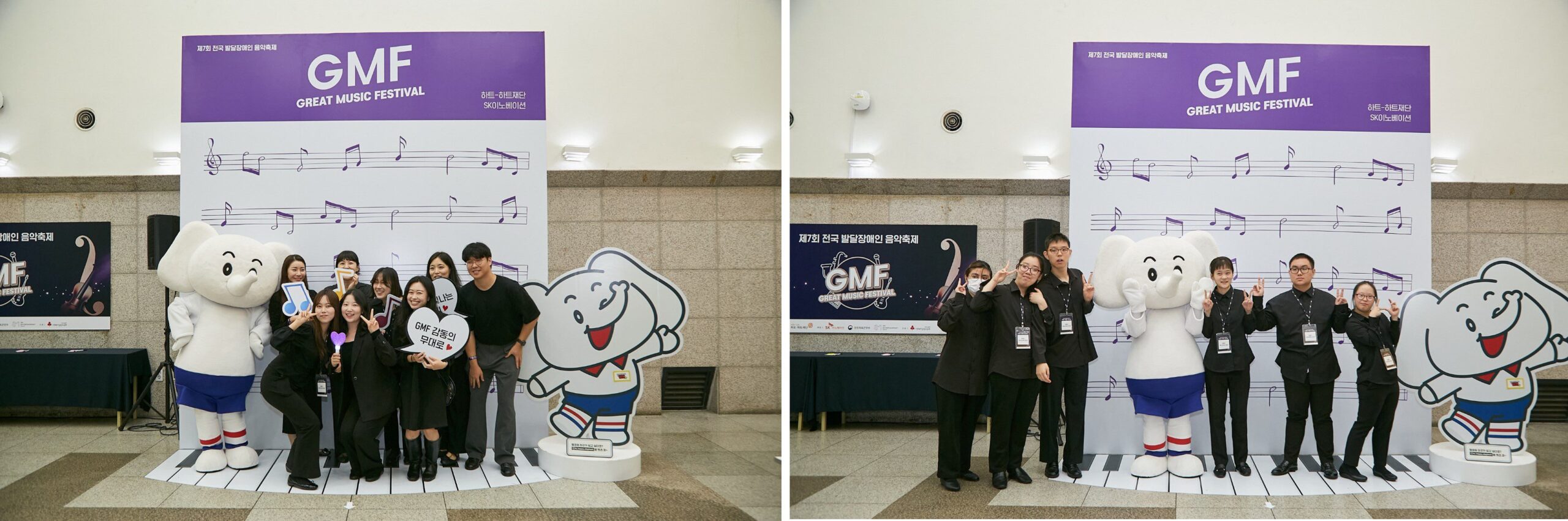 이날 로비에는 깜짝 게스트로 SK이노베이션의 친환경 캐릭터인 ‘행코(행복한 코끼리)**’가 등장해 행사장을 찾은 관객들의 즐거움을 배가시켰다. 관객, 발달장애인 연주단체 단원 및 그 가족들은 귀여운 ‘행코’와 악수를 하는 등 반가움을 표했고, 함께 기념사진을 찍으며 행복한 시간을 보냈다. 행사장 로비 곳곳에 마련된 풍성한 부대행사는 본격적인 경연 무대가 시작되기 전부터 GMF 현장을 뜨거운 열기에 휩싸이게 만들었다.