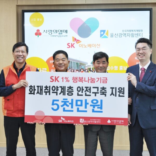울산사회복지공동모금회 조진호 사무처장은 “다양한 사회공헌사업으로 취약계층의 생계, 의료뿐 아니라 화재예방을 통한 안전 확보에도 노력하는 SK와 임직원분들에게 감사하다”며 “이번 지원으로 취약계층이 편안한 겨울을 보낼 수 있도록 최선을 다하겠다”고 고마움을 전했다.