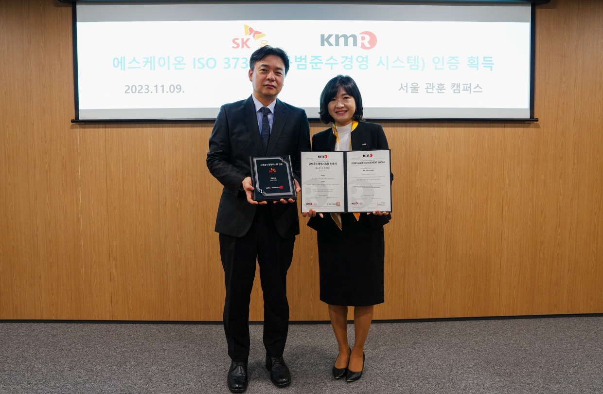 SK온이 한국경영인증원(KMR)로부터 국제표준 규범준수 경영시스템 ‘ISO 37301’ 인증을 획득했다고 9일 발표했다.