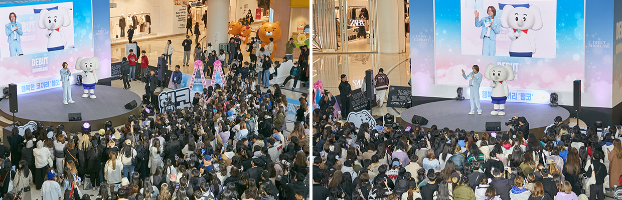 MC 이특이 가장 먼저 에너지 넘치는 무대 매너로 쇼케이스의 문을 열었다. 이특은 행코를 보기 위해 행사장을 찾은 팬들을 환영하며 데뷔 무대에 대한 기대감을 높였다. 이어 무대 위에선 과거에서 현대로 타임워프(Time warp)하게 된 행코의 세계관 스토리를 소개하는 애니메이션 영상 상영과 함께, 이날의 주인공 행코가 등장했다. 행코는 1980~90년대 유공(現 SK이노베이션) 코끼리 축구단의 마스코트인 ‘유공 코끼리’를 재해석한 캐릭터로, 지난해 새로운 이름 ‘행코’와 함께 환경을 지키는 코끼리로 돌아왔다. ‘프로 아이돌’처럼 포즈를 취하며 무대에 등장한 행코의 귀여운 모습을 현장 관람객들은 부지런히 사진으로 담았다.