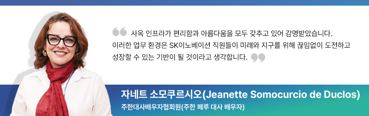 SK이노베이션 임수길 밸류크리에이션센터장의 환영사와 나탈리아 페데리히(Natalia Federighi de Cuello) 주한대사배우자협회장(주한 도미니카공화국 대사 배우자)의 축사로 문을 연 이 자리에는 도미니카공화국, 영국, 핀란드, 스위스, 네덜란드, 탄자니아, 볼리비아, 페루, 콜롬비아 등 세계 각국의 주한대사 배우자들이 참석했다. 나탈리아 페데리히 주한대사배우자협회장은 축사에서 “SK이노베이션이 한국 기업을 대표해 우리에게 인사이트(insights)를 공유해줘 진심으로 감사하다”며 “사회적가치 창출을 향한 SK이노베이션의 헌신, 그리고 다양한 국가 및 정부와의 협력을 위한 노고는 매우 고무적인 사례”라고 말했다.