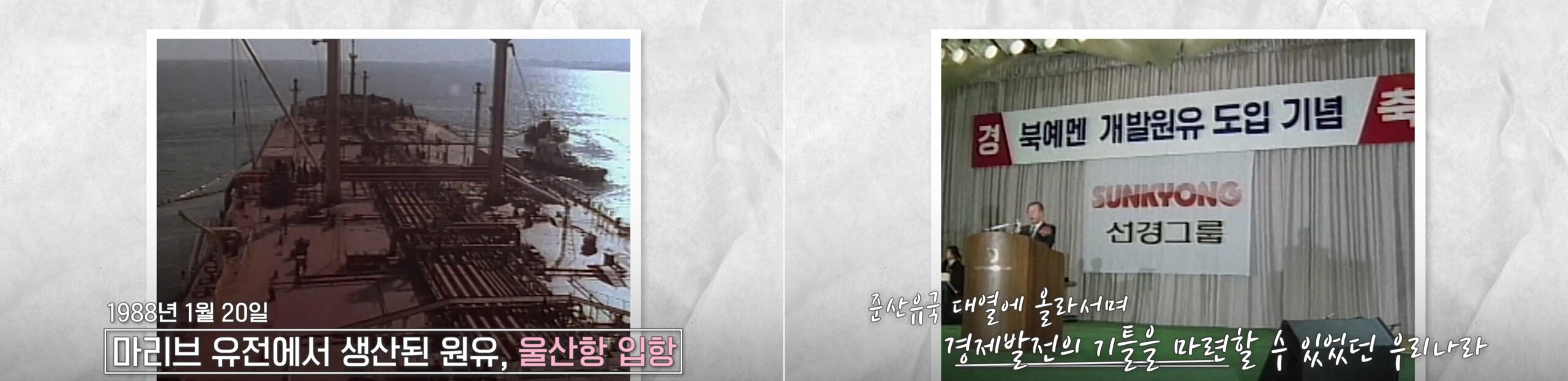 SK이노베이션의 자회사 SK어스온(당시 유공)은 1983년 4월, 인도네시아 카리문 광구 지분 참여를 시작으로 본격적인 석유개발 사업에 나섰고, 이듬해 아프리카 모라타니 광구 개발에도 참여했지만 유징*은 발견되지 않았다. 두 번의 실패를 딛고 북예멘 마리브 광구 개발에 나선 1984년 7월, 마리브 광구 알리프 제1 유정에서 대규모 유징을 발견하는 데 성공한다. 그리고 1988년 1월 20일, 마리브 유전에서 생산된 원유가 울산항에 최초로 입항했다. 우리나라가 준산유국 대열에 올라서며 에너지 수급 안정을 통한 경제발전의 기틀을 마련한 순간이었다.