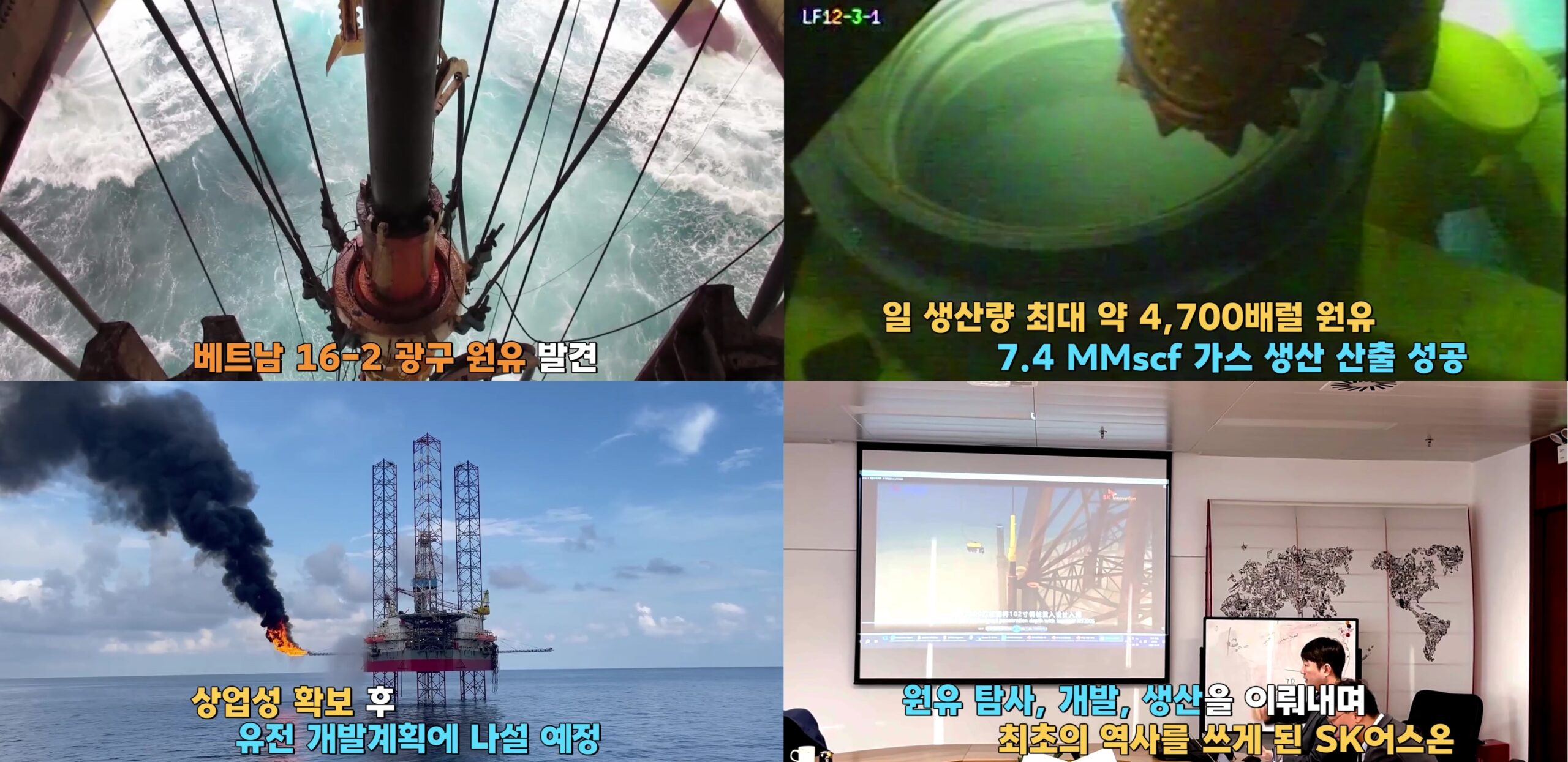 뿐만 아니라 SK어스온은 베트남 남동부 쿨롱 분지(Cuu Long Basin) 내 위치한 해상 16-2 광구에서 원유 발견에 성공하며 잇따른 쾌거를 보였다. 베트남 15-1/05 광구 이후 4년 만의 발견이다. 탐사정 시추를 통해 원유층을 발견하고 산출시험(Drill Stem Test, DST)을 실시한 결과, 첫 번째 저류층** 구간에서 일 생산량 최대 약 4,700배럴의 원유 및 7.4 MMscf (100만 표준 입방피트)의 가스 생산 산출에 성공한 것이다.