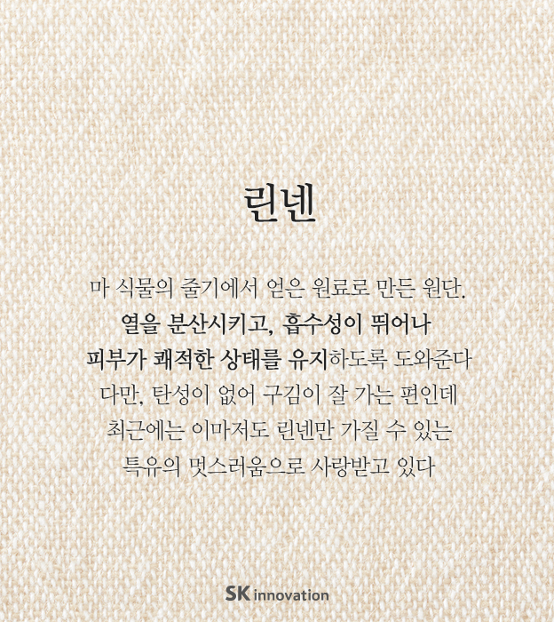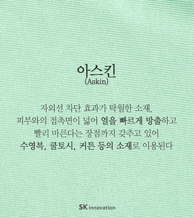 [카드뉴스] 무더운 여름을 시원하게 만들어줄 소재 2016. 06. 22 SK이노베이션 [카드뉴스] 무더운 여름을 시원하게 만들어줄 소재 AI 요약 AI 보이스 미디어 키트 이전글 냉장고 바지 리플 린넨 여름 소재 여름 원단 인견 다음글 연관 콘텐츠 INNO FOCUS 플라스틱 혁신으로 지속가능성을 더하다 – SK지오센트릭, 기아 EV3 스터디카에 친환경 솔루션 탑재 2024.12.06 ENERGY INSIGHT [SKinno Tech] 지금 음극재가 주목받는 이유? 2023.03.14 PRESS SK지오센트릭-라이온코리아 ‘친환경 소재 생활용품 포장용기 개발’ 업무협약 2022.05.30 INNO FOCUS [기획] Decarbon.을 향한 SK이노베이션 계열의 노력, ‘그린 트랜스포메이션’ 현장을 가다⑪ – 친환경 경량화 소재 사업 박차 가하는 SK지오센트릭 2021.11.25