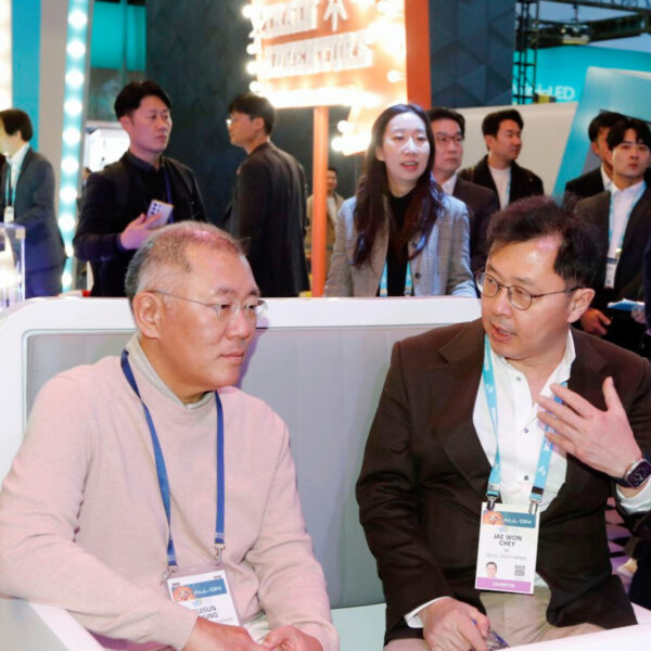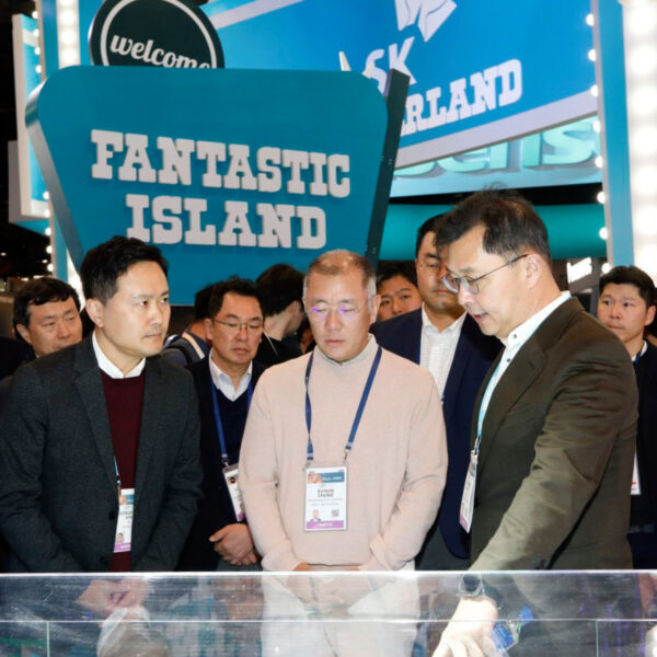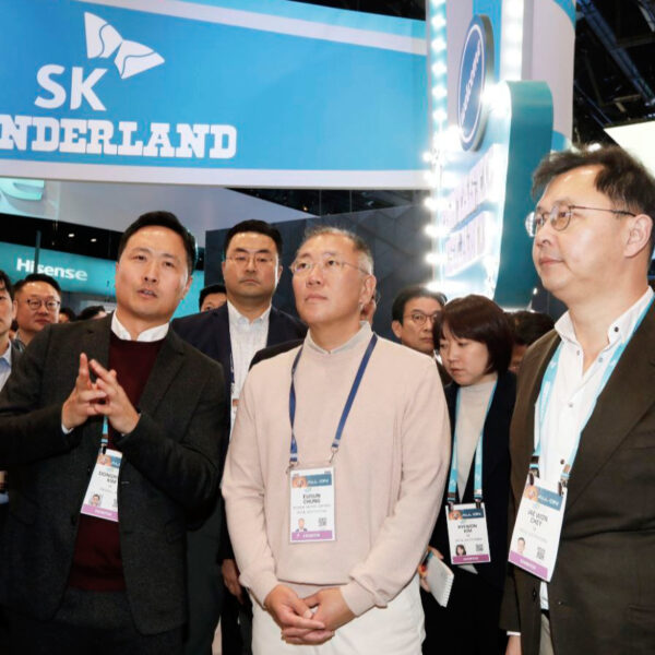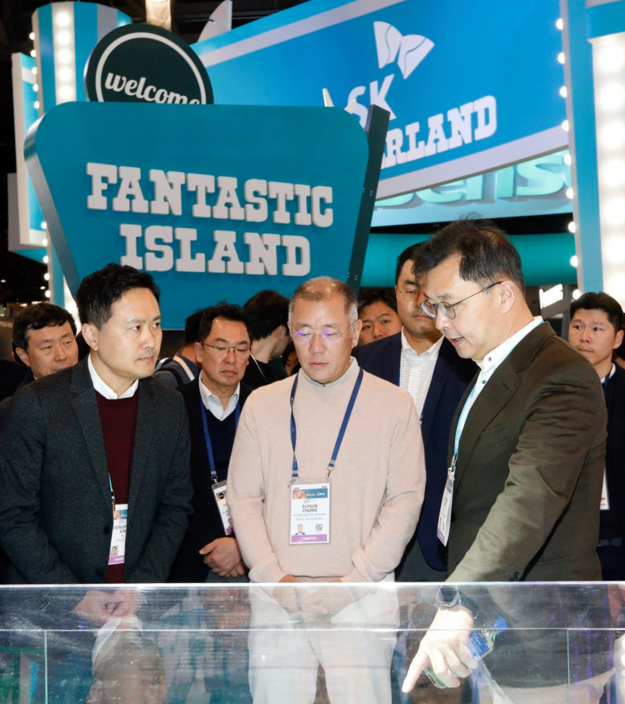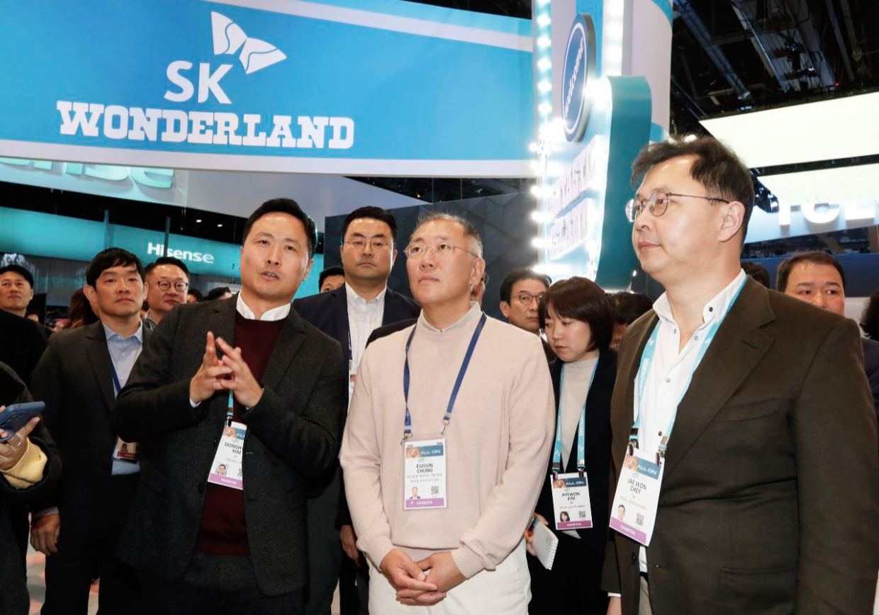 [사진] 최재원 SK그룹 수석부회장, CES SK그룹관 방문한 정의선 현대차그룹 회장 안내