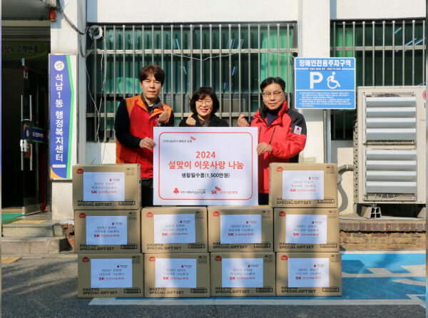 SK인천석유화학은 지난달 31일 석남1동 행정복지센터에서 ‘이웃사랑 나눔 전달식’을 열고, 1천5백만원 상당의 명절 선물세트를 기부했다.